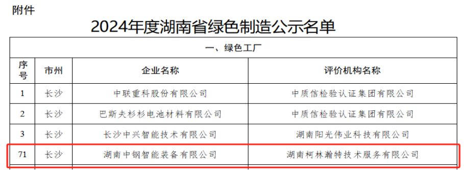 10月10日,湖南省工业和信息化厅发布2024年度湖南省绿色制造名单,乐动(中国)智能装备有限公司通过层层筛选,专家评审以及现场考察,在众多申报企业中脱颖而出,成功获批湖南省绿色工厂,这标志着中钢装备在推动绿色制造领域上又迈出了坚实的一步。