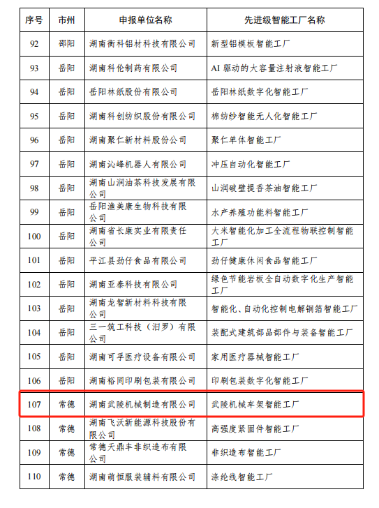 湖南武陵机械制造有限公司荣膺2025年先进级智能工厂