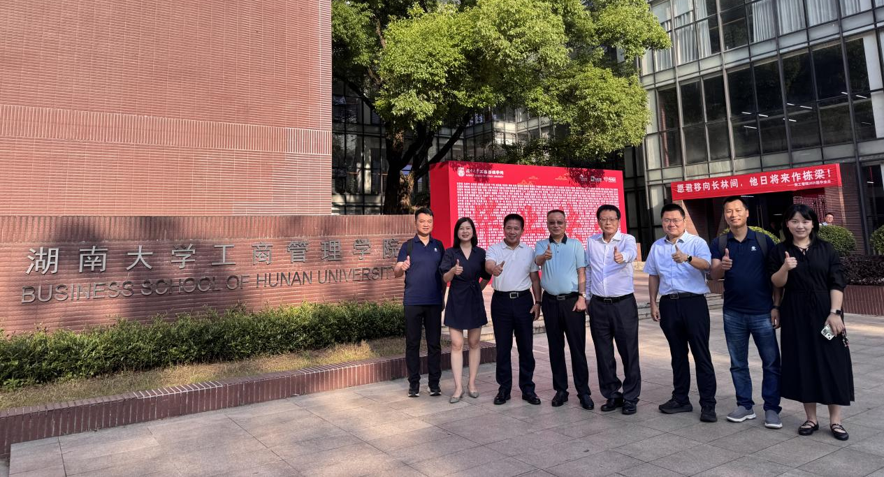 结束与机械学院的深入交流后,岳俊峰董事长一行移步湖南大学工商管理学院。学院杨智院长、李平主任及高管教育中心负责人热情接待,并详细介绍了学院的学科特色以及高端人才培养项目。
