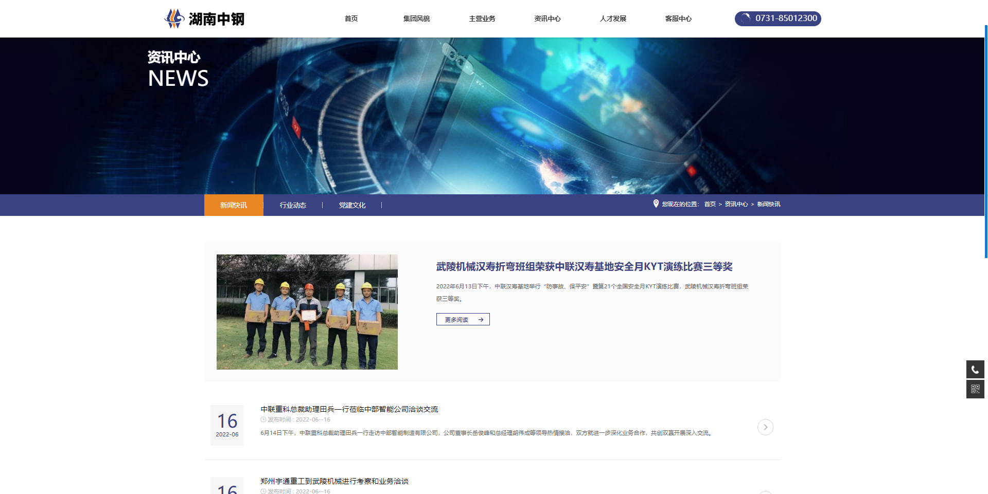 “资讯中心”下设二级栏目“新闻快讯”、“行业动态”、“党建文化”,实时更新中钢动态。