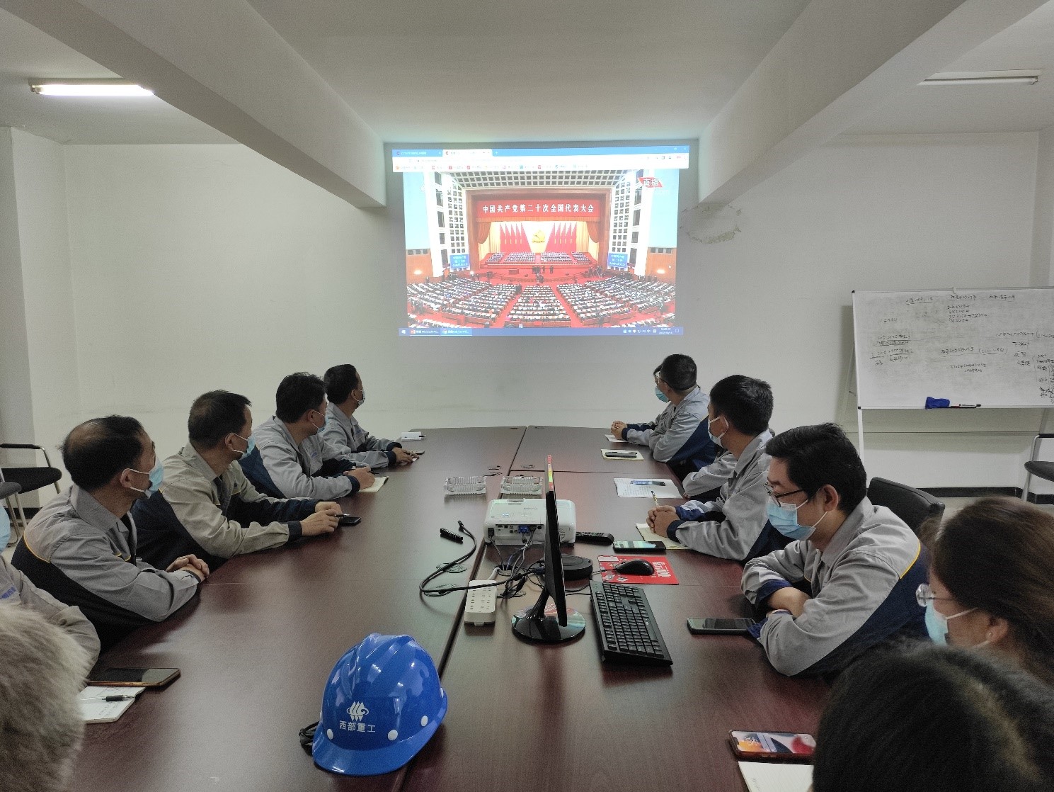 2022年10月16日上午,陕西西部重工党支部组织公司党员、干部、积极分子,在二楼大会议室观看中国共产党第二十次全国代表大会开幕。