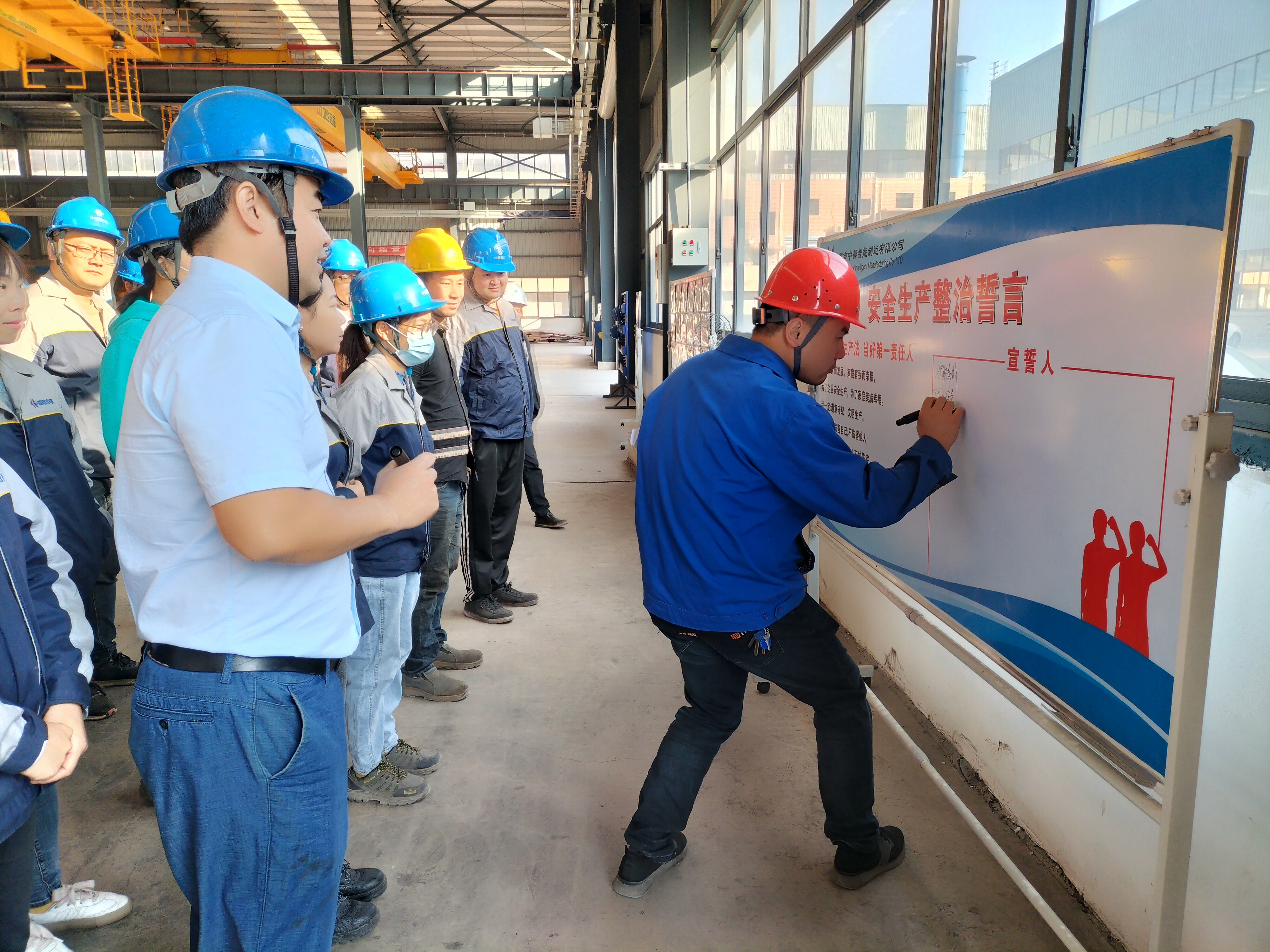 全体人员在“安全生产整治誓言”签名墙上进行签名。
