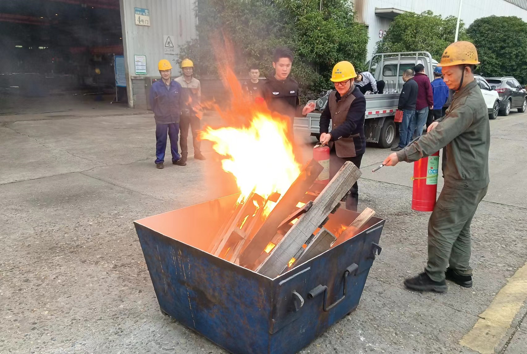 演练现场,大家踊跃体验灭火器的操作使用,对假设点部位发生火灾进行扑灭,并通过实际操作,掌握了相关消防器材的正确使用及初期火灾的处置方法,消防安全知识得到了普及,自救、互救能力得到了极大提高。